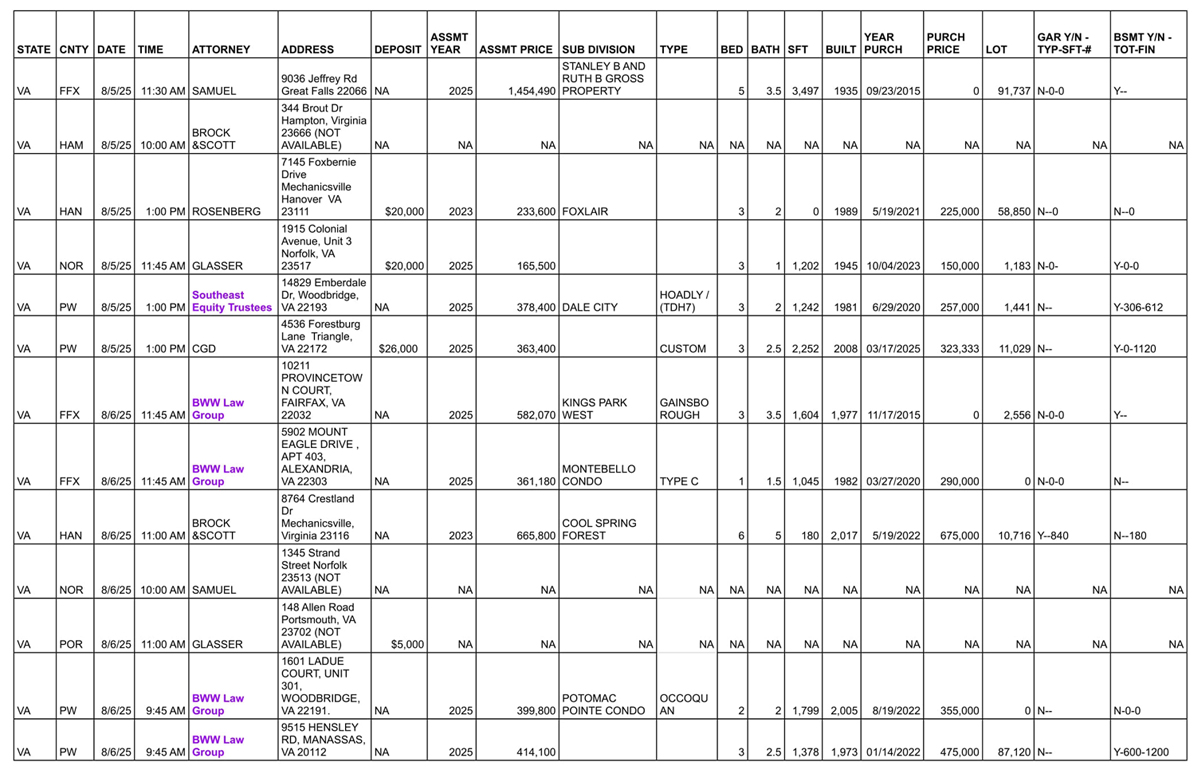 Auction Info : Auction Date & Time, Attorney, Required Deposit Amount