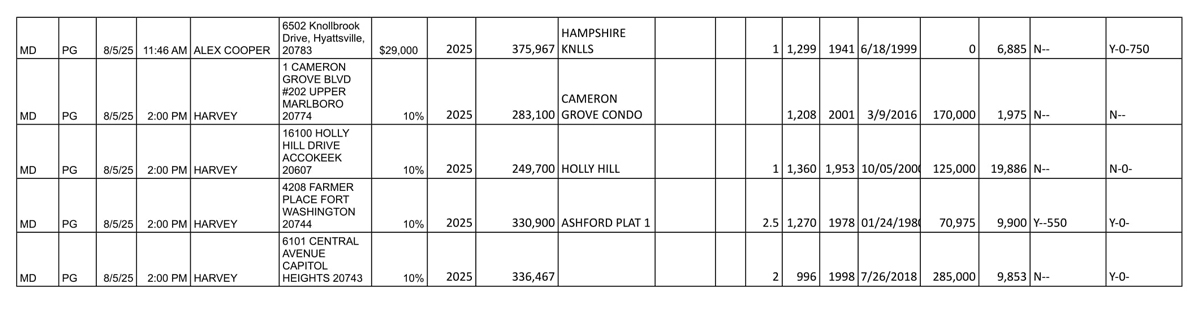 Property Type : SFH, TH, ETH – with full specs like Beds, Baths, Garage, Lot Size,